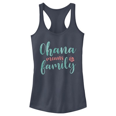 Ohana means family, and family means no tee gets left behind! Find the perfect style for your family with this new Juniors' Disney Lilo & Stitch Bold Ohana means Family Graphic Racerback Tank Top! This fun design features the word "Ohana" in bold green lettering and "Means Family" underneath in smaller lettering, with a cute little Stitch on the left side. Celebrate a certain alien, otherwise known as Experiment 626 in style with new hilarious apparel for the whole family from the movie!