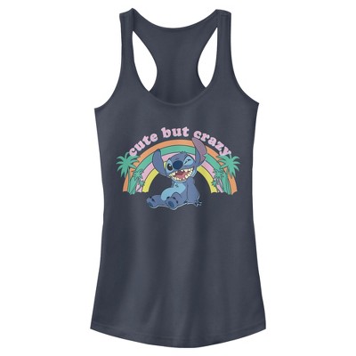 • Enjoy comfort and fashion at the same time with this unique juniors' graphic racerback tank design from Lilo & Stitch.