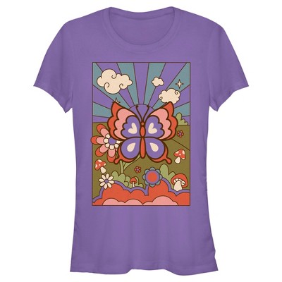 • Strut your stuff with this stylish new juniors' t-shirt that is perfect for every occasion! Featuring a half-crescent moon, a butterfly, and flowers in an airbrushed art style across the front.
