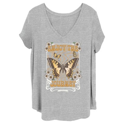 • Strut your stuff with this stylish new juniors' plus t-shirt that is perfect for every occasion! Featuring yellow, blue, and pink, butterflies with the text: "California Golden State of Mind," across the front.