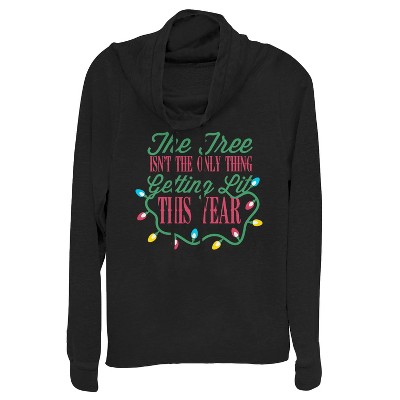 Juniors Womens Lost Gods Christmas Tree Lit This Year Cowl Neck Sweatshirt - Black - X Small