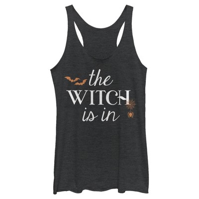 Juniors Womens Lost Gods Halloween The Witch Is In Racerback Tank Top