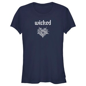 • Strut your stuff with this stylish new Halloween juniors' t-shirt that is perfect for the trick-or-treating season! Featuring the word: "Wicked," in a gothic font lettering with a heart-shaped spider web across the front.