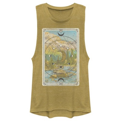 Juniors Womens Lost Gods The Moon Tarot Card Festival Muscle Tee - Gold Heather - X Small