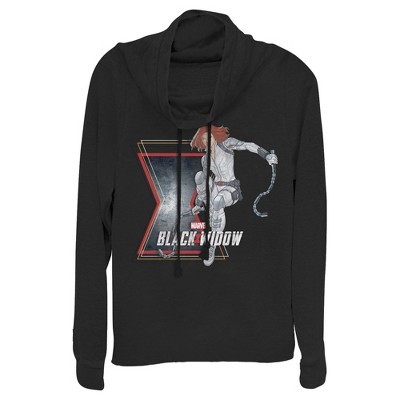 Juniors Womens Marvel Black Widow Binary Code Cowl Neck Sweatshirt