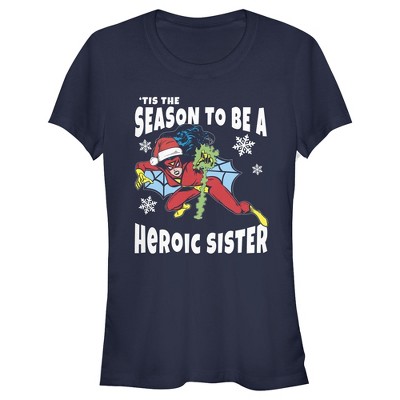 Juniors Womens Marvel Christmas Spider-Woman Heroic Daughter T-Shirt - 1 of 3