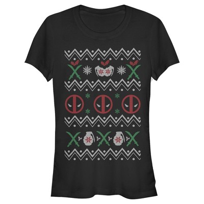 Juniors Womens Marvel Deadpool Santa Hat Ugly Sweater Holiday T-Shirt