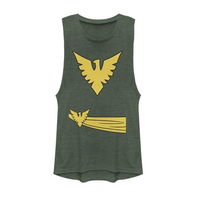 Juniors Womens Marvel Halloween X- Men Phoenix Costume Festival Muscle Tee - Pine Green Heather - Large