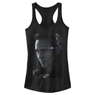 Juniors Womens Marvel Loki Miss Minutes Glitch Racerback Tank Top
