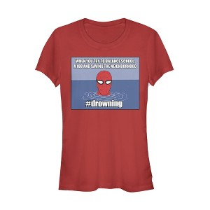 Juniors Womens Marvel Spider-Man #drowning T-Shirt - 1 of 3