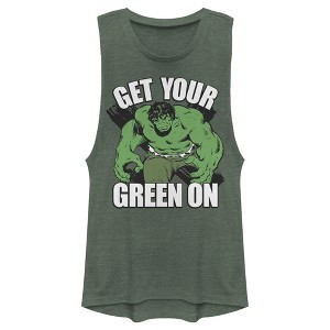 It's your lucky day because you've got an entire team of superheroes to make sure you don't get pinched with this awesome officially licensed Marvel St. Patrick's Day Hulk Green On Juniors' Festival Muscle Tank top. Featured on this cool tank top is a graphic of the Hulk with "Get Your Green On" printed around him.