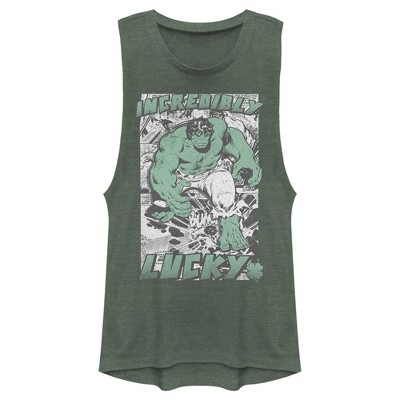 Juniors Womens Marvel St. Patrick's Day Hulk Incredibly Lucky Clover Festival Muscle Tee