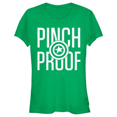 It's your lucky day because you've got an entire team of superheroes to make sure you don't get pinched with this awesome officially licensed Marvel St. Patrick's Day Spider-Man Pinch Proof Junior's Tee. Featured on this tee is "Pinch Proof" printed largely across the front with Spider-Man's face in the center.