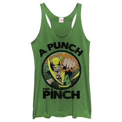 It's your lucky day because you've got an entire team of superheroes to make sure you don't get pinched with this awesome officially licensed Marvel St. Patrick's Iron Fist Punch for a Pinch Juniors' Tee. Featured on this tee is a graphic of Iron Fist with "A Pinch for a Punch" printed around him.