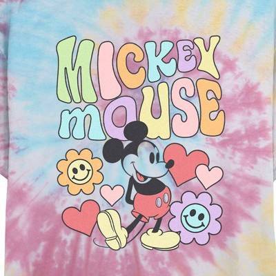 Who knew that dressing "mousey" could be so cute!? Celebrate Walt Disney's most iconic character with this officially licensed Disney Mickey & Friends Groovy Hearts and Smilies Logo Juniors' Graphic Tie Dye Cropped T-Shirt. This classic juniors' tee features Mickey Mouse with his name written above him in a colorful and groovy style accompanied by hearts and smiley flowers. Add this retro Disney tee to your collection for the perfect style for your next trip to Disneyland!