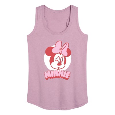• Strut your stuff with this stylish new everyday Juniors' Racerback Tank Top that is perfect for every occasion! Featuring a distressed Minnie Mouse portrait with her arms behind her back while looking off to the side.
