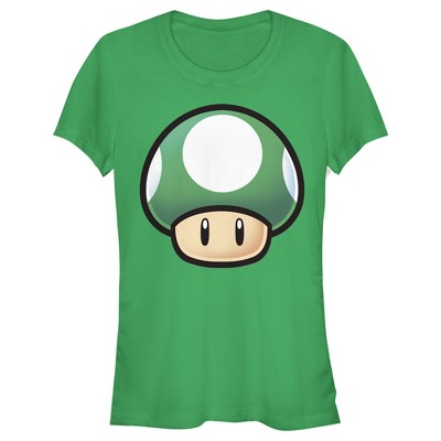 Juniors Womens Nintendo 1-Up Mushroom Portrait T-Shirt - Kelly Green - Medium