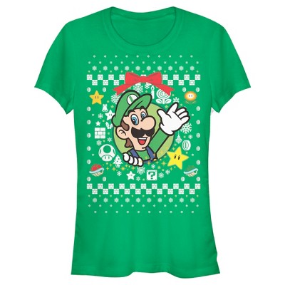 Juniors Womens Nintendo Christmas Super Mario Mustache T-Shirt