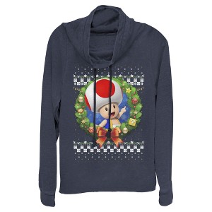 Now gamers can get in the holiday spirit with the Nintendo Christmas Toad Wreath Juniors' Cowl Neck! Shop festive holiday graphic apparel featuring Mario, Donkey Kong, Link, Zelda, and all your favorite Nintendo characters.