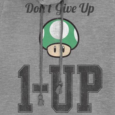 Juniors Womens Nintendo Don't Give Up Level Up Mushroom Cowl Neck Sweatshirt - 1 of 3