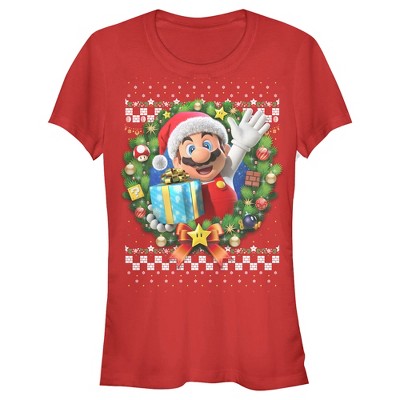 Juniors Womens Nintendo Ugly Christmas Mario T-Shirt