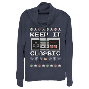 Now gamers can get in the holiday spirit with the Nintendo Ugly Christmas Sweater NES Classic Controller Juniors' Cowl Neck! Shop festive holiday graphic apparel featuring Mario, Donkey Kong, Link, Zelda, and all your favorite Nintendo characters.