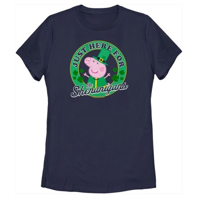 • Strut your stuff with this stylish new Juniors' T-Shirt that is perfect for St. Patrick's Day! Featuring Peppa Pig wearing a leprechaun costume while encircled outfit encircled by the text "Just Here For the Shenanigans."
