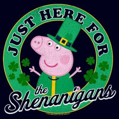 • Strut your stuff with this stylish new Juniors' T-Shirt that is perfect for St. Patrick's Day! Featuring Peppa Pig wearing a leprechaun costume while encircled outfit encircled by the text "Just Here For the Shenanigans."