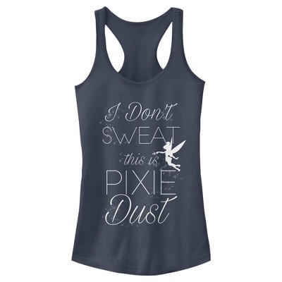 - Strut your stuff with this stylish new everyday Juniors' Tank Top that is perfect for every occasion! Featuring the Camp Never Land logo printed across the front along with the text "Never Grow Up" below and a flying silhouette of Tinkerbell.