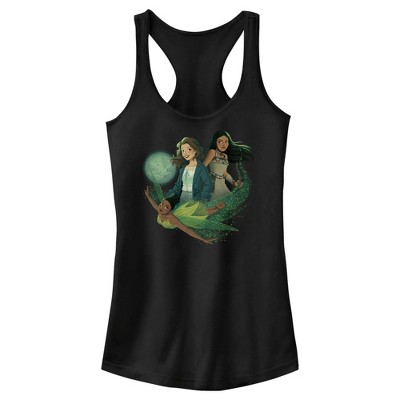 • Faith, trust, and Pixie dust come along with this stylish new juniors' racerback tank top featuring the movie's animated poster of Wendy, Captain Hook, Peter Pan, and Tinker Bell across the front.