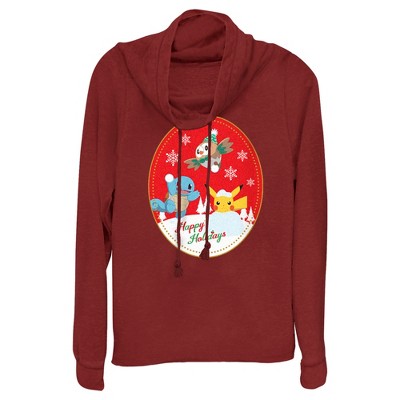 Juniors Womens Pokemon Christmas Window Cowl Neck Sweatshirt