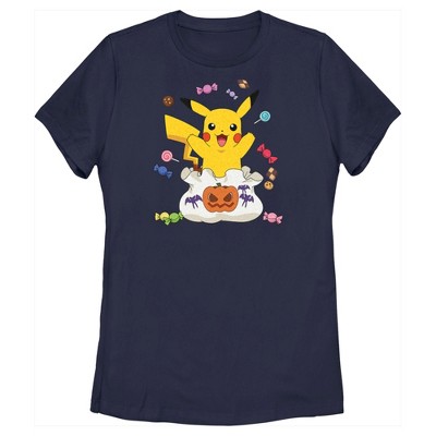 Juniors Womens Pokemon Halloween Pikachu Caramel Apple T-Shirt