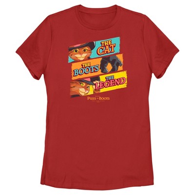 Juniors Womens Puss in Boots: The Last Wish Distressed Purple Puss in Boots T-Shirt - Red - Large
