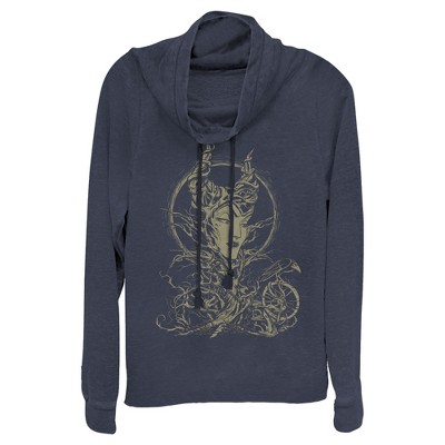 • Strut your stuff with this stylish new juniors' cowl neck sweatshirt that is perfect for every occasion! Featuring a silhouette of Sleeping Beauty and Maleficent on a poster graphic.
