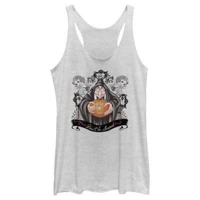Mirror, mirror, on the wall…the Disney Snow White and the Seven Dwarves Halloween Witch Juniors' Ideal Racerback Tank Top is the fairest of them all! This fun Halloween tank features the Evil Queen offering up a jack-o'-lantern with the title "Don't Be Scared" below, and sketches of Snow White in the background.