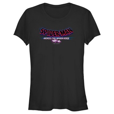 Enjoy comfort and fashion at the same time with this unique juniors' graphic tee design from Spider-Man: Across the Spider-Verse Part 1.
