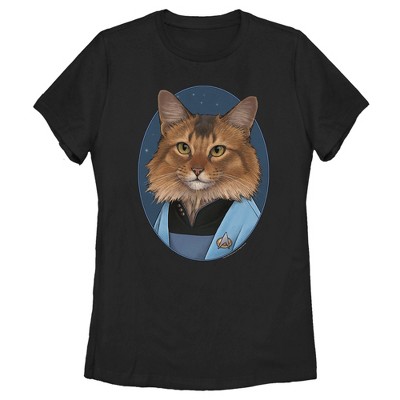 Juniors Womens Star Trek: The Next Generation Officer Wesley Crusher Cat T-Shirt - Black - Large