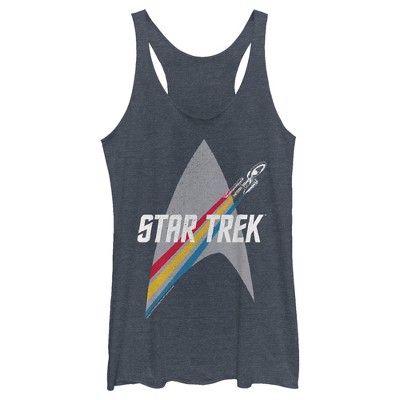 Juniors Womens Star Trek: The Original Series Starfleet Academy Enterprise Boldly Go Racerback Tank Top - Indigo - Large