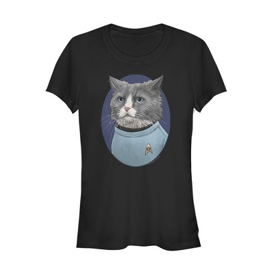 Juniors Womens Star Trek Uhura Cat Portrait T-Shirt - Black - Large