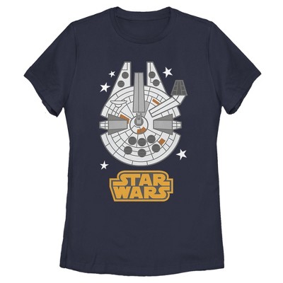 Juniors Womens Star Wars Cartoon Millennium Falcon T-Shirt