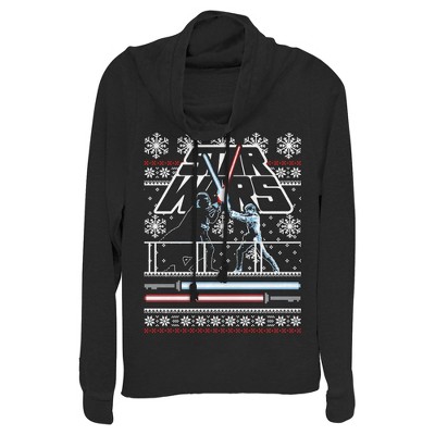 Juniors Womens Star Wars Christmas Dark Side Snowflakes Cowl Neck Sweatshirt