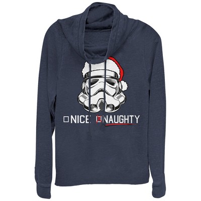Juniors Womens Star Wars Christmas Naughty Stormtrooper Cowl Neck Sweatshirt