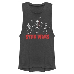 Juniors Womens Star Wars Halloween Vader Skeletons Festival Muscle Tee