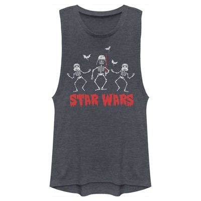 Juniors Womens Star Wars Halloween Vader Skeletons Racerback Tank Top