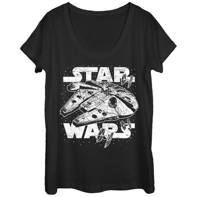 Juniors Womens Star Wars Line Art Millennium Falcon T-Shirt