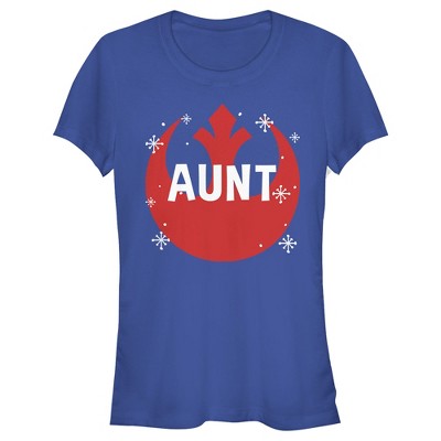 Juniors Womens Star Wars Mom Snowflake Rebel Logo T-Shirt - Royal Blue - Large