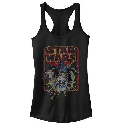 Relive the excitement of when the first Star Wars film was released with the Star Wars A New Hope Black Racerback Tank Top. This soft and breathable top features the artwork from one of the original Star Wars posters printed in fun colors.