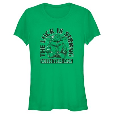 Juniors Womens Star Wars: The Mandalorian Grogu St. Patrick's Day Rainbow Lucky and Cute T-Shirt - Kelly Green - X Large