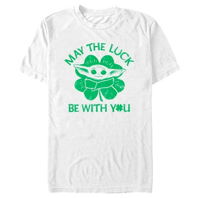 Juniors Womens Star Wars: The Mandalorian St. Patrick's Day Grogu May Luck be with You Retro T-Shirt - White - X Large