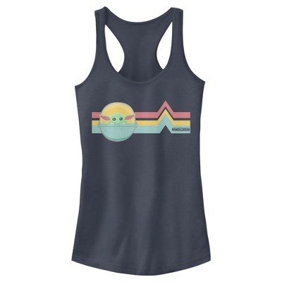 Is that a Baby Yoda? It couldn't be because this little nugget of cuteness was born after the Battle of Yavin and Yoda was born almost 900 years before that! But the similarity sure is striking isn't it? You'll be the envy of the galaxy in this Star Wars The Mandalorian The Child Cartoon Shy Juniors' Racerback Tank Top. Bounty hunting may be a complicated profession but figuring out how to dress yourself in the morning just got a little easier.